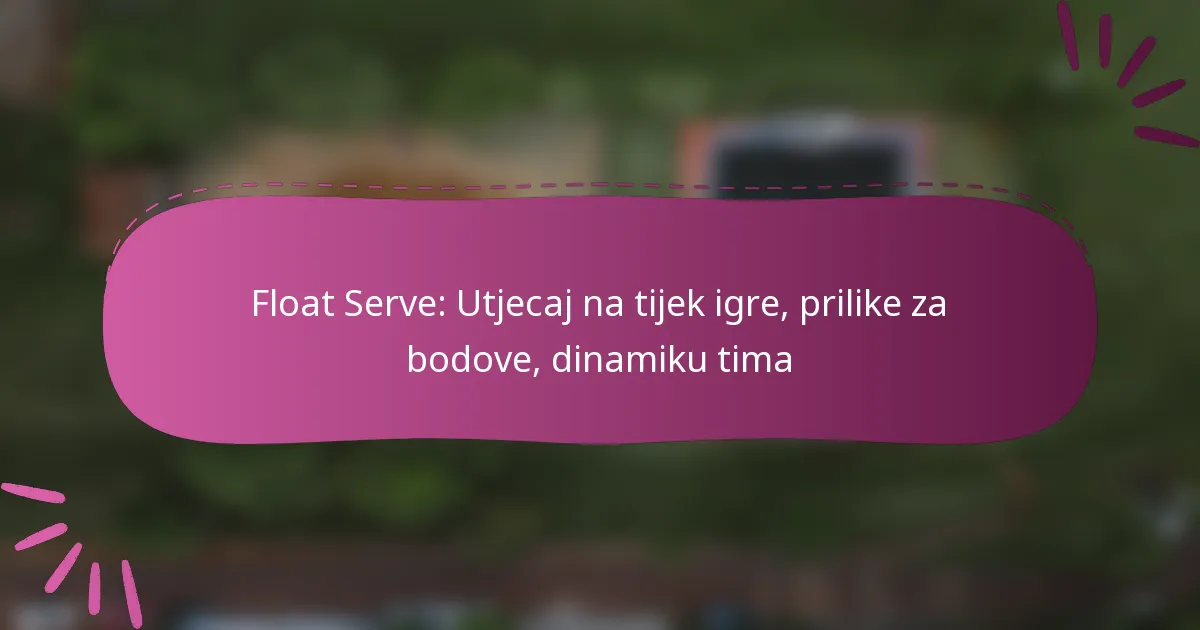 Float servis je karakterističan odbojkaški servis koji nema spin, što rezultira nepredvidivim kretanjem koje može otežati prijem protivnicima. Njegove prednosti uključuju ometanje ritma protivnika, prilagodljivost različitim vremenskim uvjetima i manji rizik od dvostrukih grešaka, što ga čini pogodnim za igrače svih razina vještina. Ovaj servis je posebno učinkovit u situacijama kada je stvaranje neizvjesnosti ključno, posebno protiv igrača koji se bore s neurednim putanjama lopte.